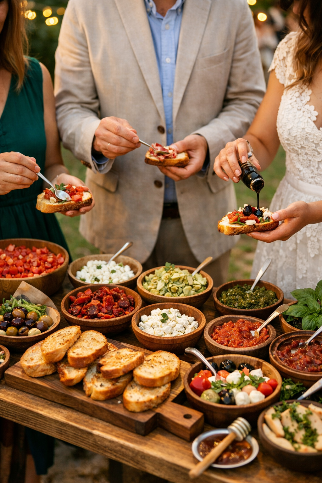 Planning a wedding is about balancing the dream with the bank account. A bruschetta bar was one of the few choices I made that worked for both. It felt personal, it tasted great, and it kept the vibe high while we were off taking sunset photos.
